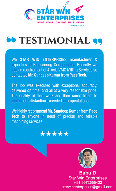 I am Sandeep Kumar V, the owner of Pace Tech. We manufacture precision-engineered components on a vertical milling center. We are a small and experienced team with the ability to provide necessary solution for the modern day machining requirements.